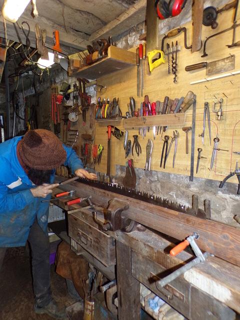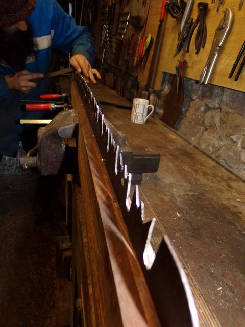 Viens ensuite la longue et délicate étape de l'affutage. Les dents sont d'abord remise de niveau à lime (à la même hauteur).