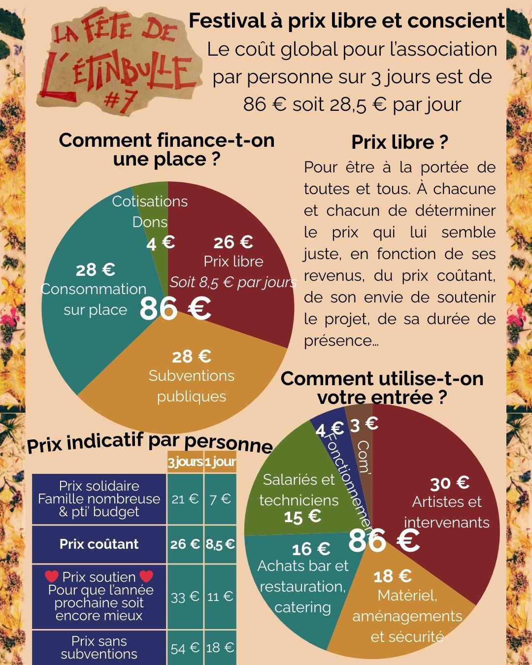 Pour être à la portée de toutes et tous, la billetterie est de nouveau à prix libre et conscient. À chacune et chacun de déterminer le prix qui lui semble juste :
