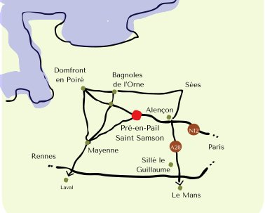 Nationale 12 - Pré-en-Pail (3Km) : sortir du bourg direction Gesvres,